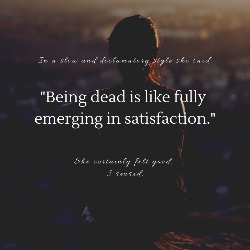 I don‘t think this message means that everyone who died is now fully satisfied, but my mother wanted me to know that she was relieved from the many worries she had taken upon herself during her life and that she was happy. Resistance is for the living.